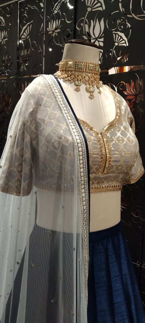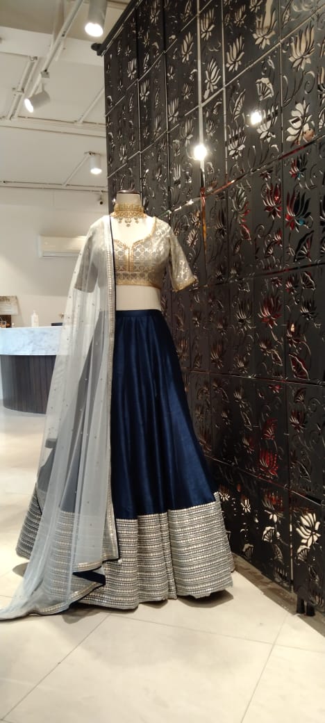 3D flower & Mirror workEmbroidery Scallop Lehenga