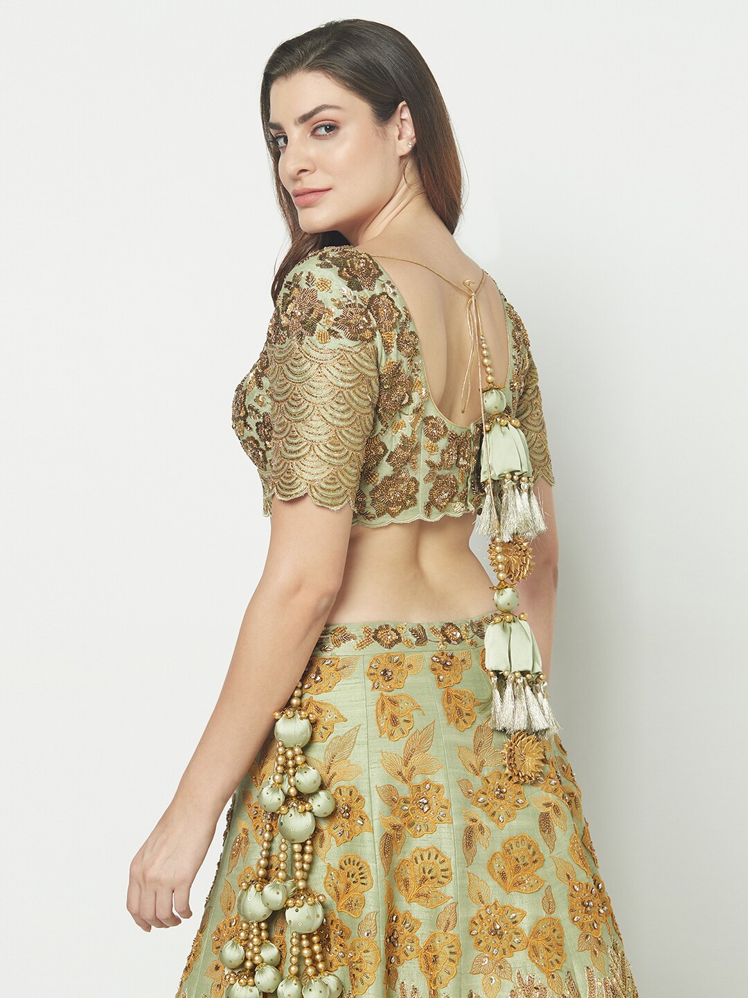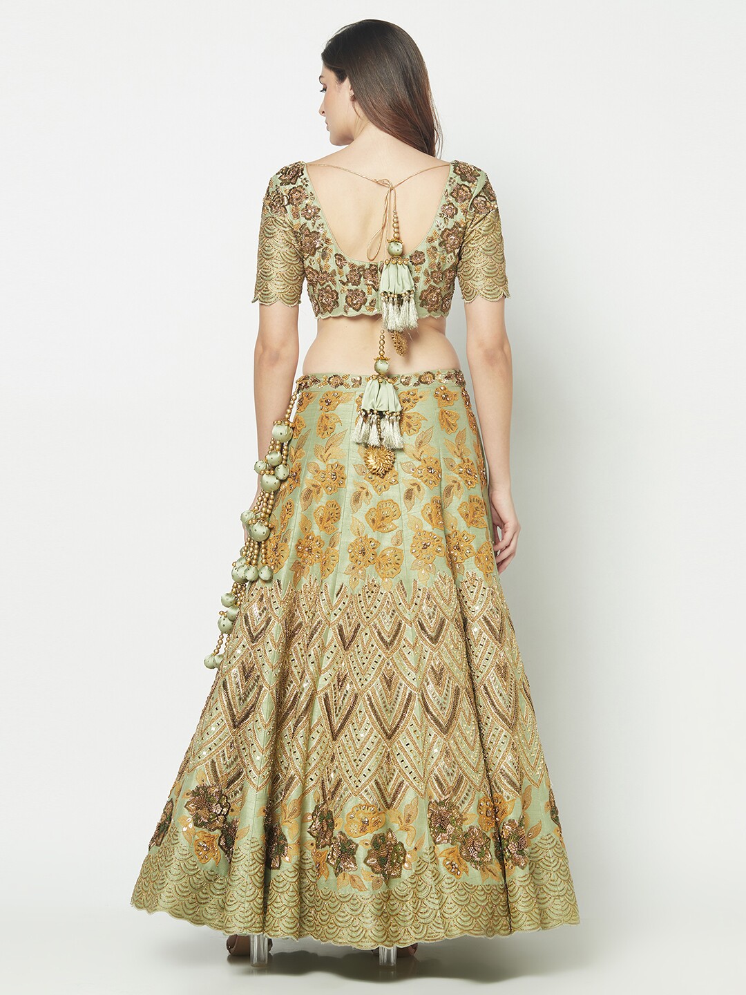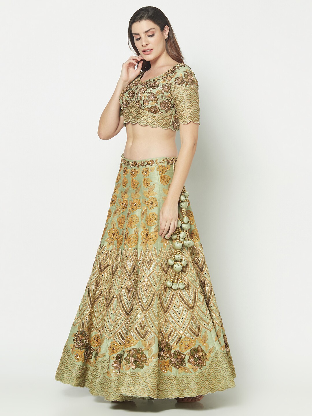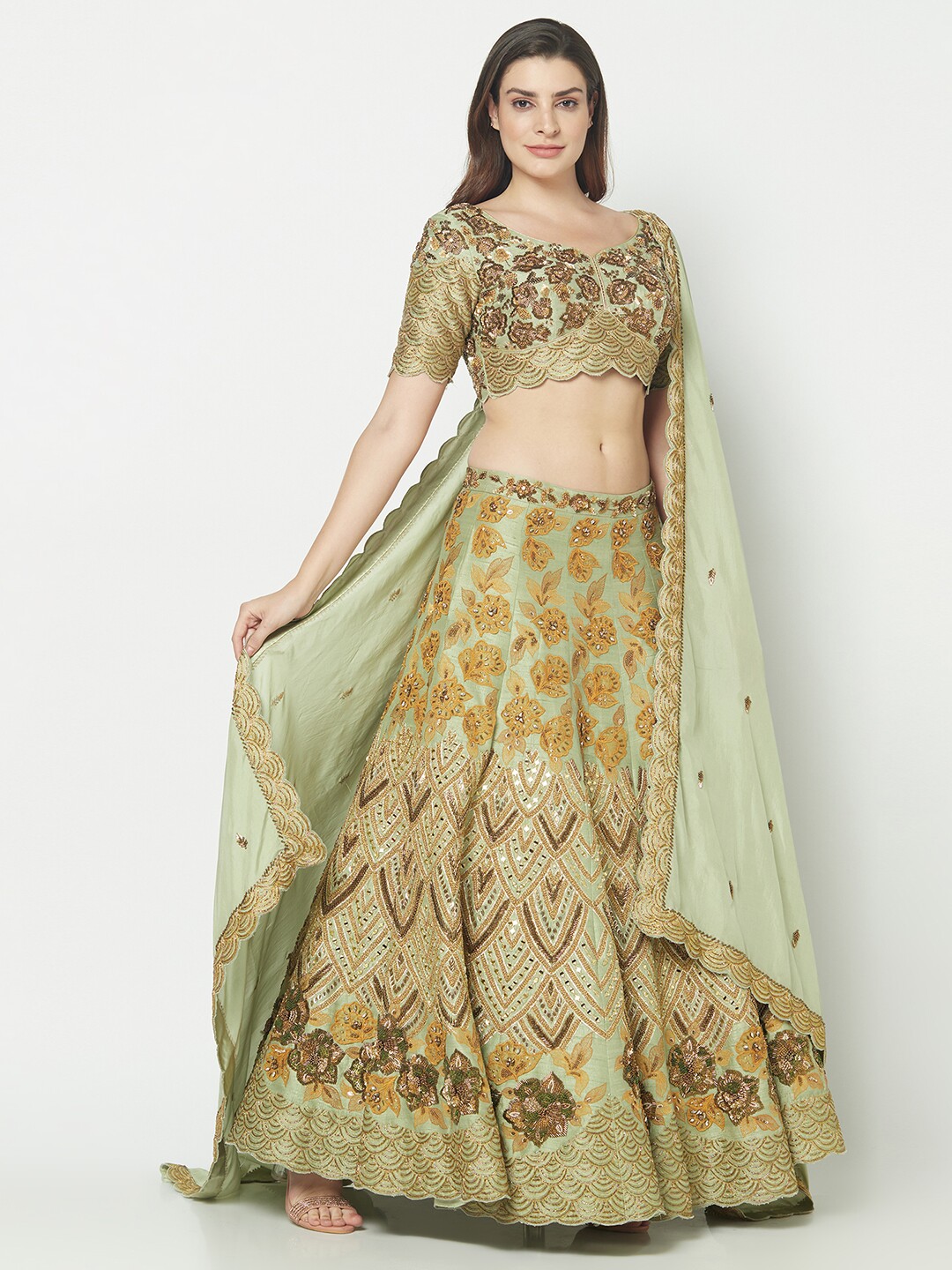 3D flower & Mirror workEmbroidery Scallop Lehenga