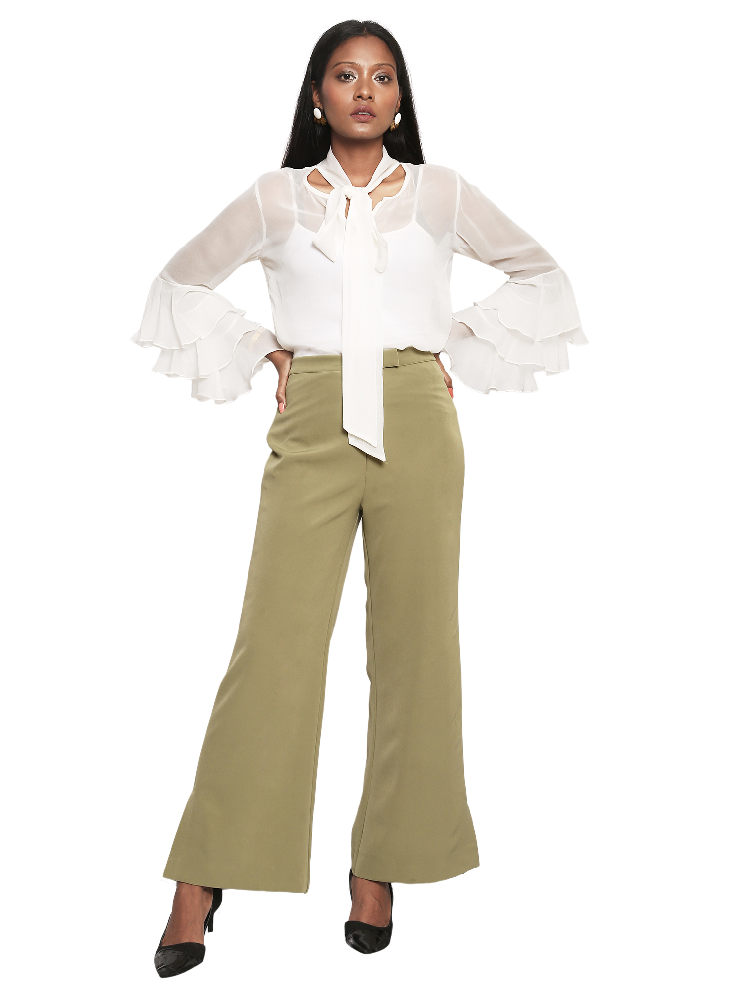 Green crepe bodice bust cup shaping cord set