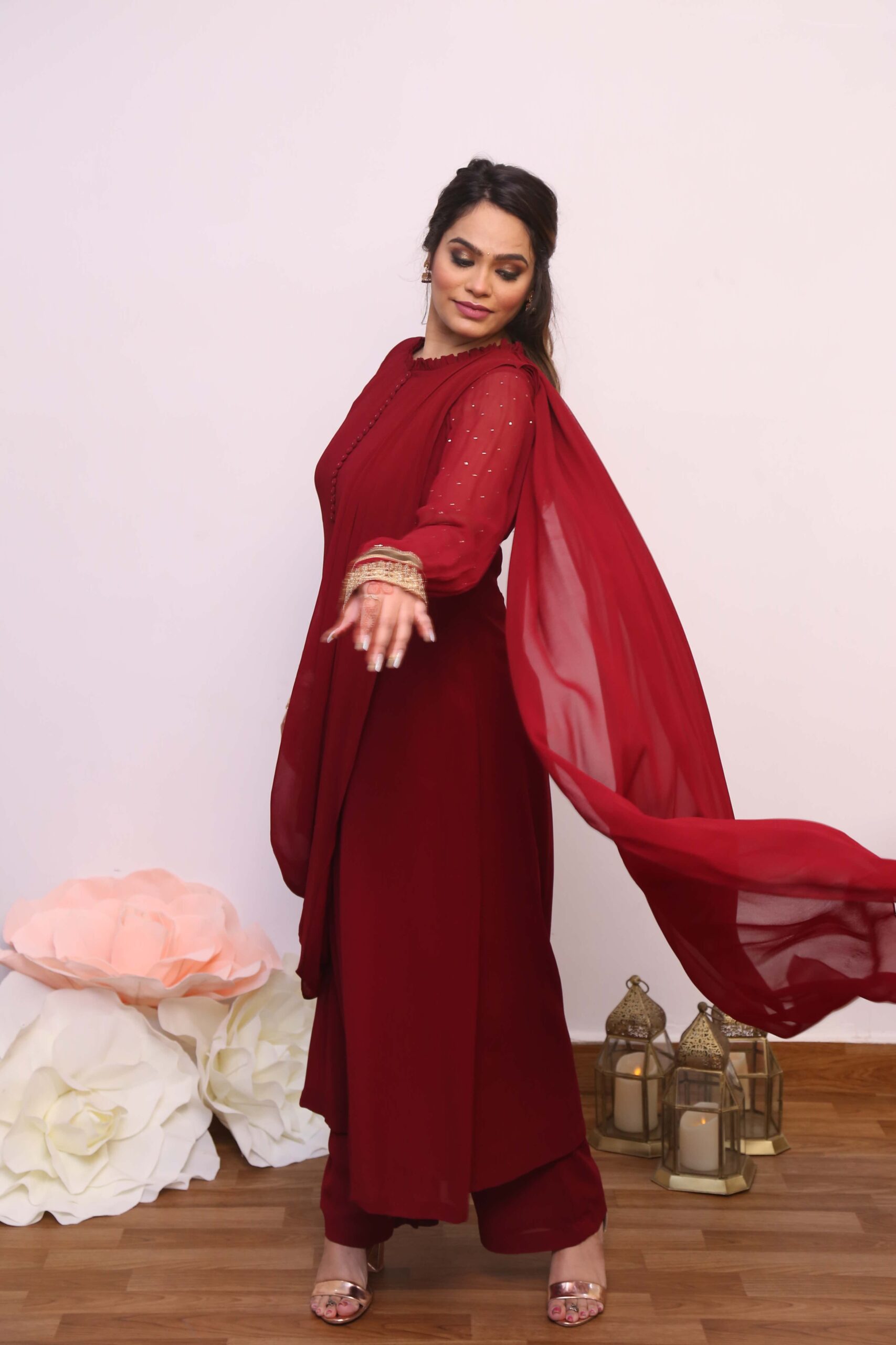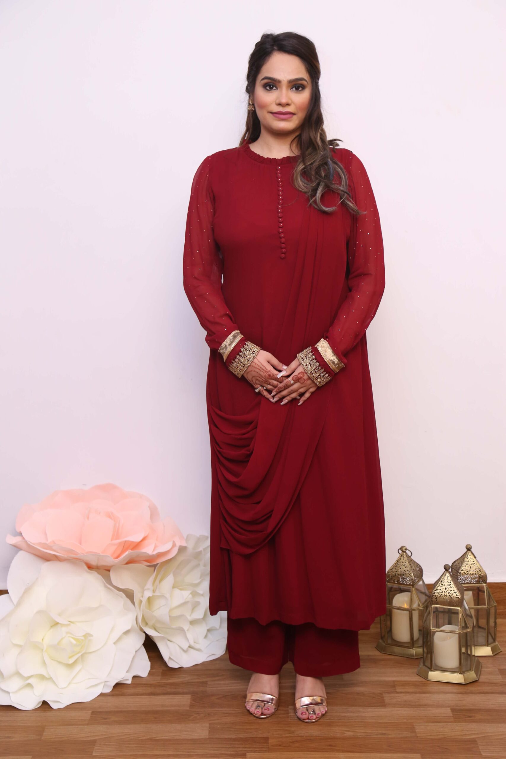 Maroon Drape suit Set quantity