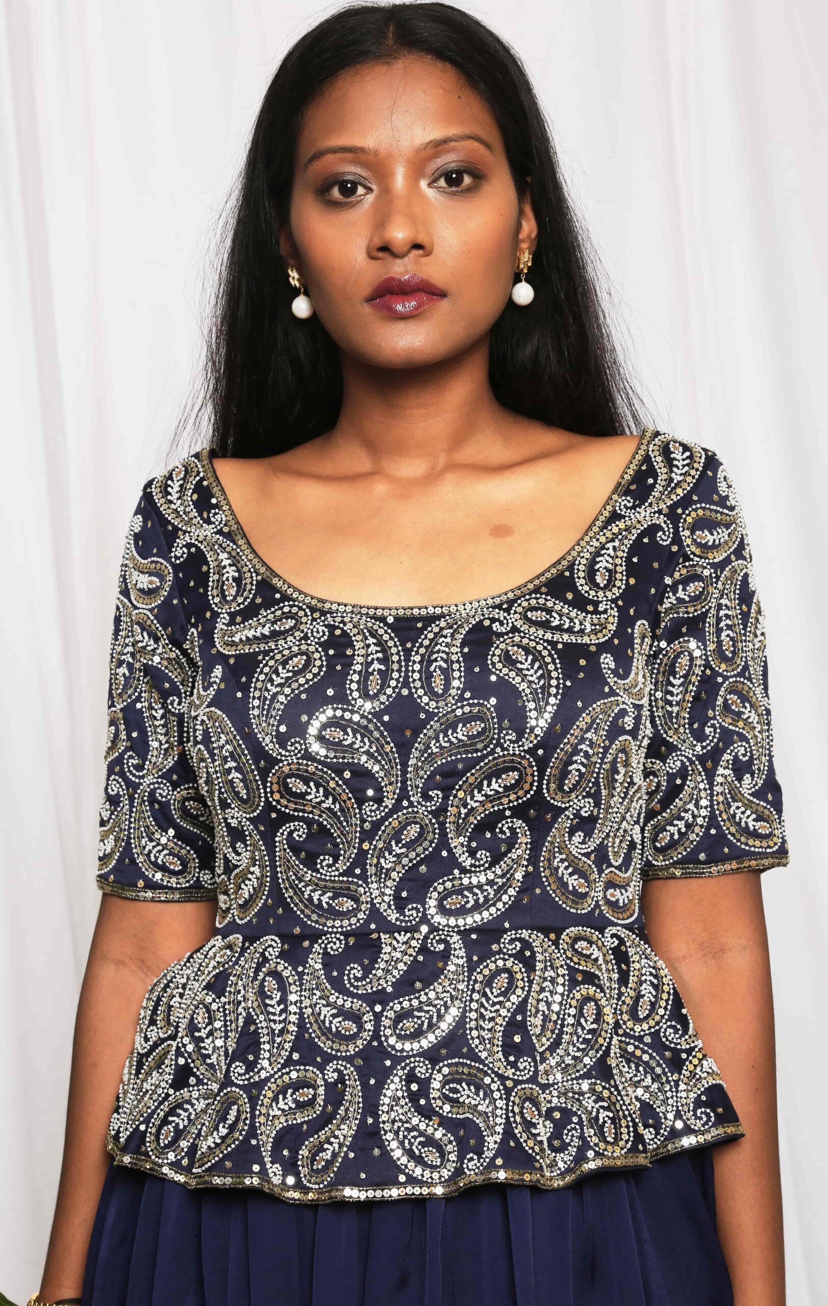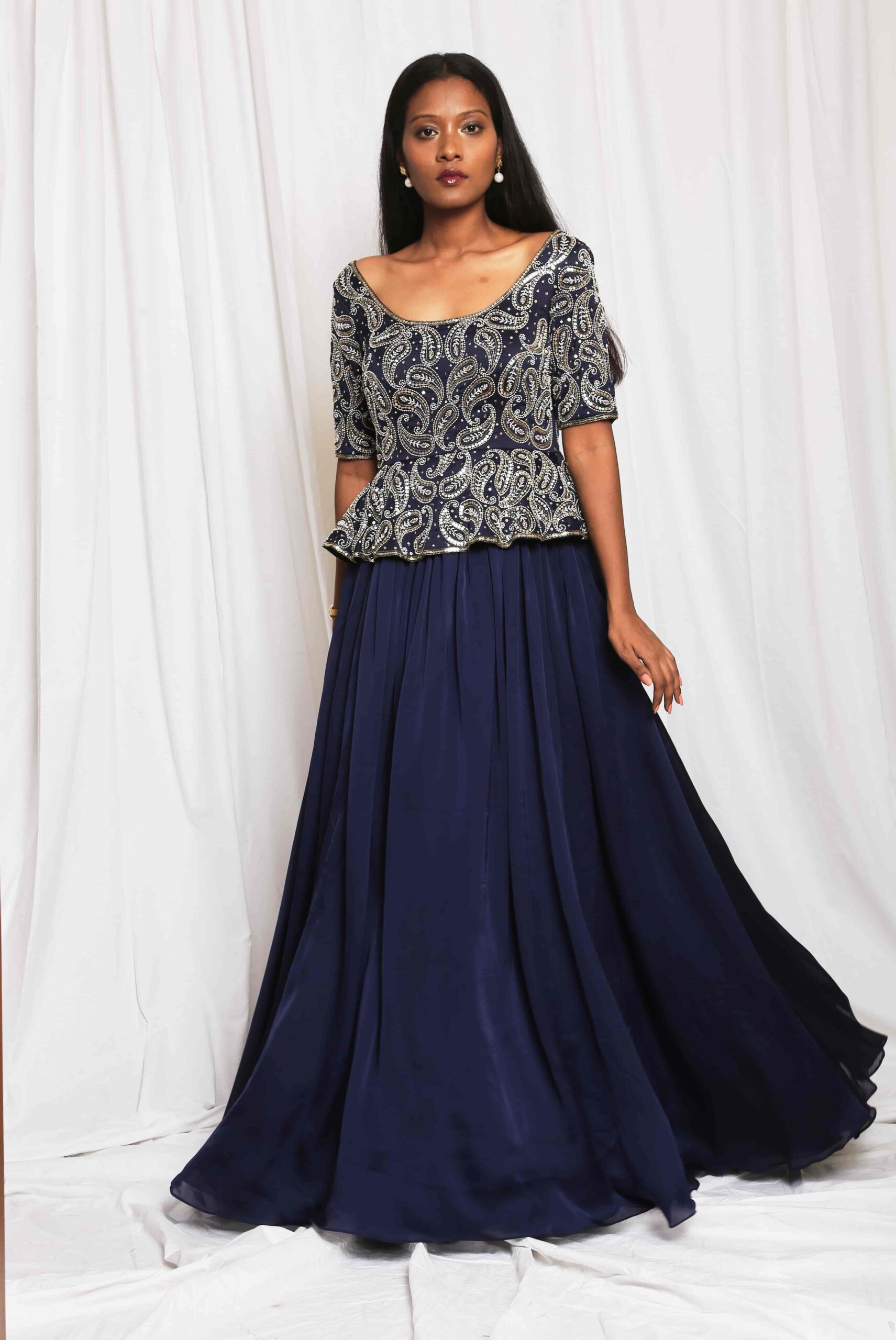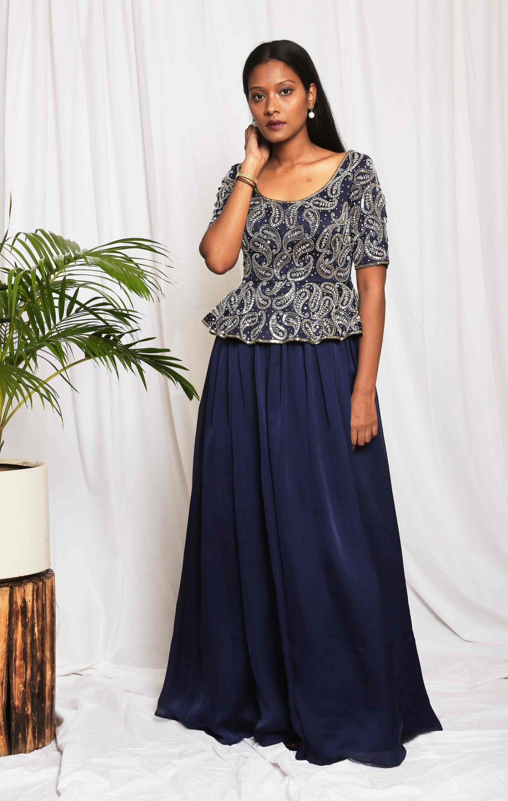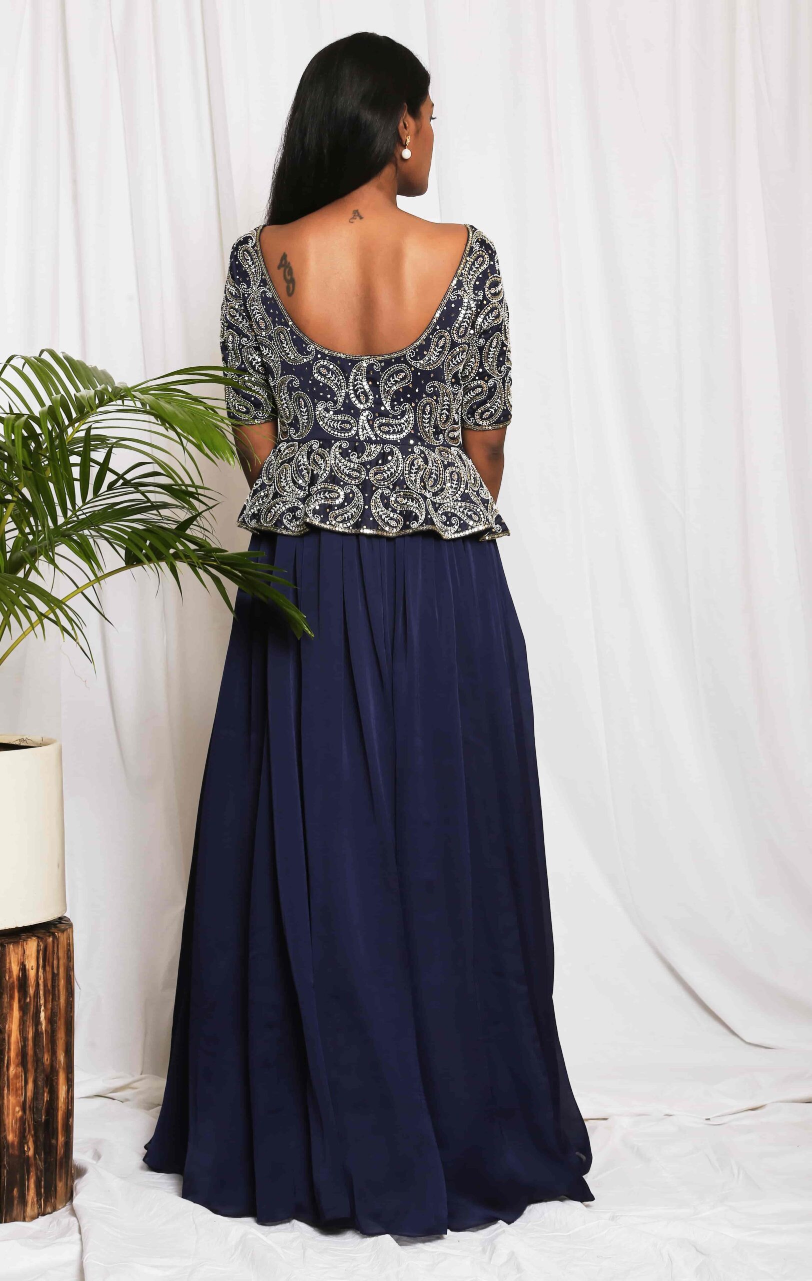 Paisley Embellished Peplum Gown