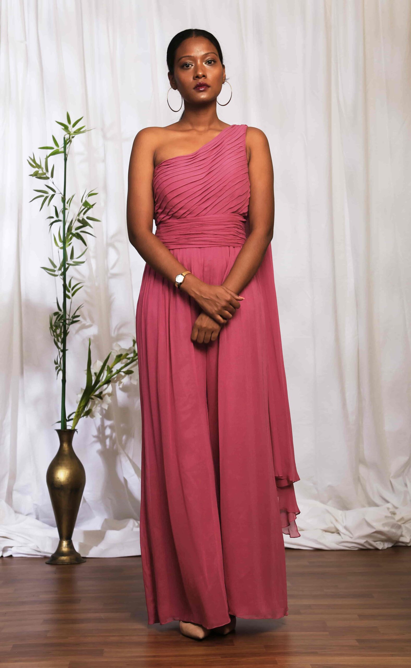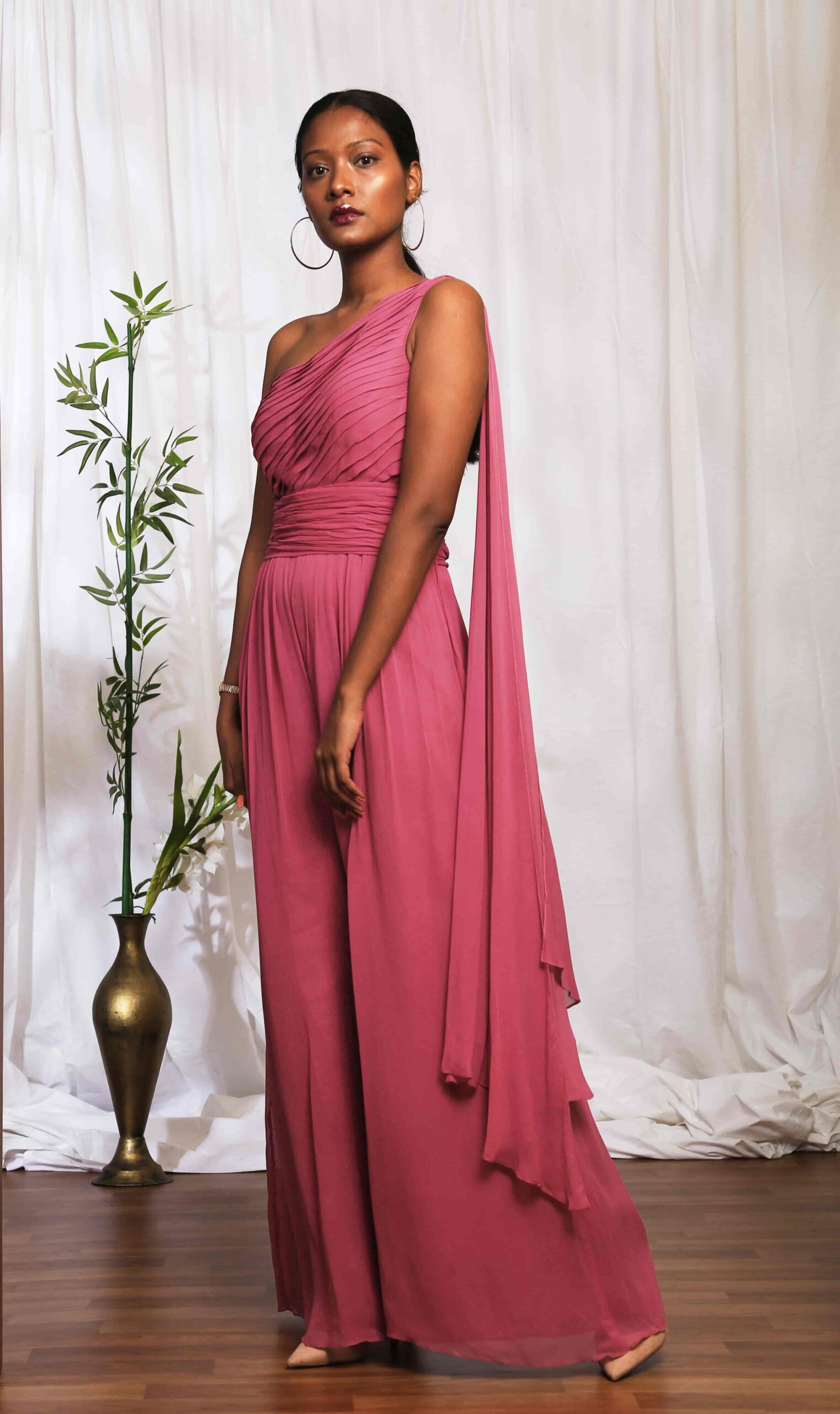 Pleated Bodice Drape Jumpsuit